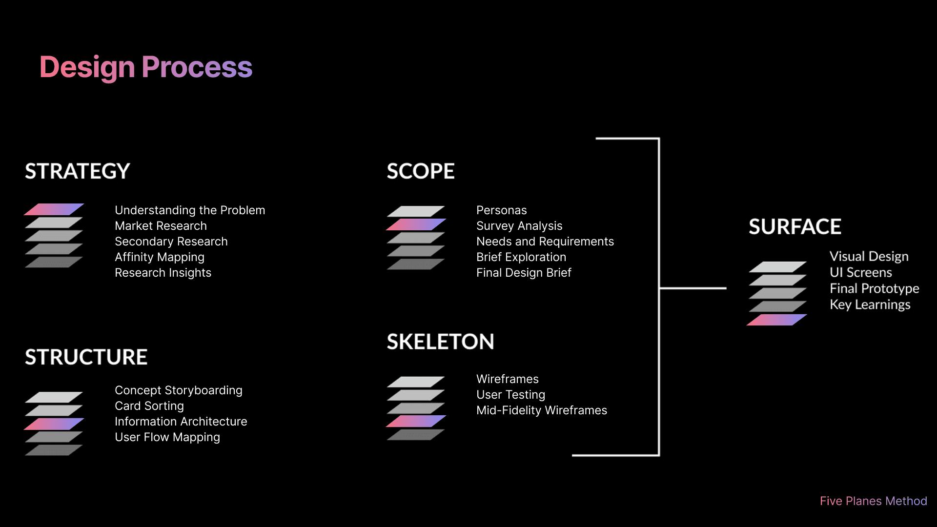 I followed the 5 plane method with agile development, ensuring value and speed.