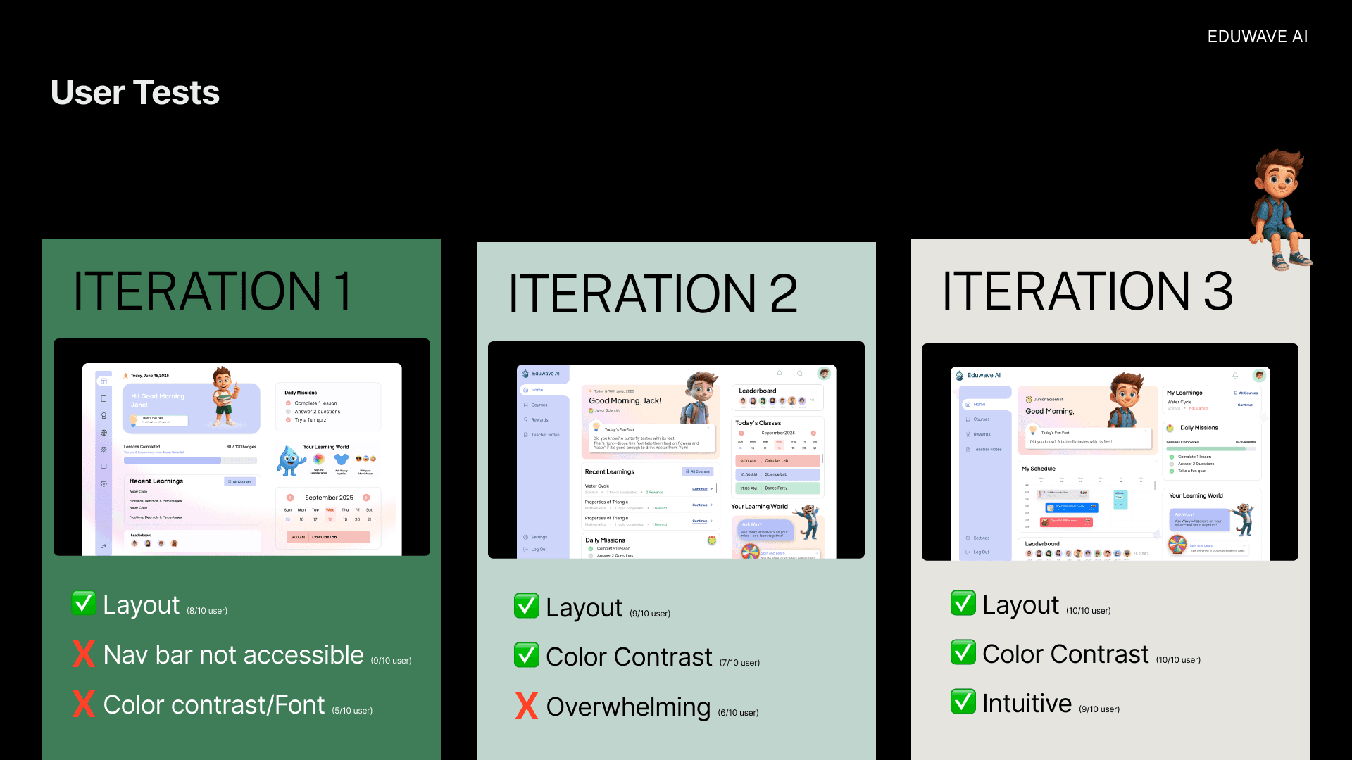 Designs were uploaded for a usability test for student-centricity & platform readiness, validating a potential flaw.
